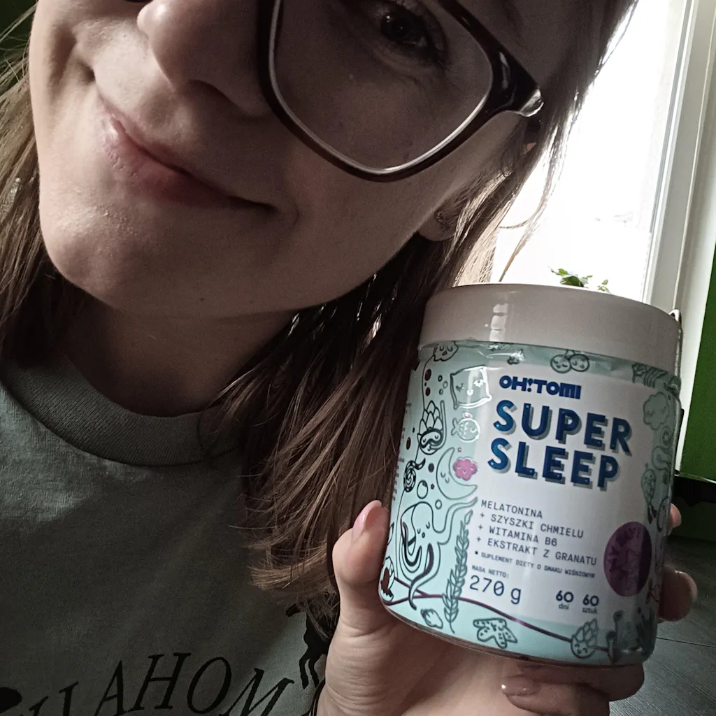 Suplimentul de jeleu Super Sleep de la Oh!Tomi este o modalitate delicioasă de regenerare în timpul somnului. Melatonina și vitamina B6 cu extracte de fructe și legume sunt încapsulate într-o formă convenabilă de gustare. De acum înainte, nu mai este nevoie să înghițiți tablete amare sau capsule mari pentru a asigura un somn odihnitor - doar un jeleu moale care ascunde o aromă delicioasă de cireșe. Produsul nu conține gluten.